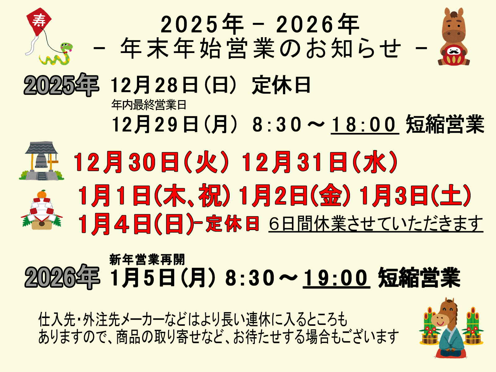 年末年始営業のお知らせ(2025年-2026年)